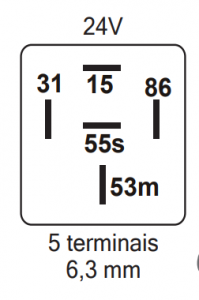 Relé auxiliar eletrônico por toque, ativa e desativa a cada pulso positivo do botão, indicado para farol de milha.